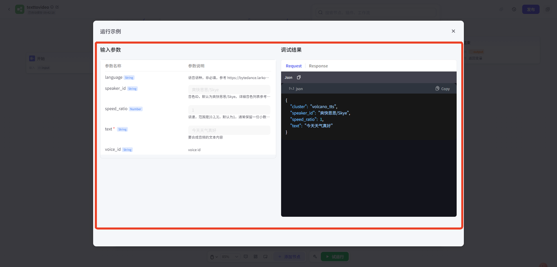使用(yòng)插件(jiàn):語音(yīn)合成(coze官方)、視(shì)頻(pín)合成工(§gōng)具箱