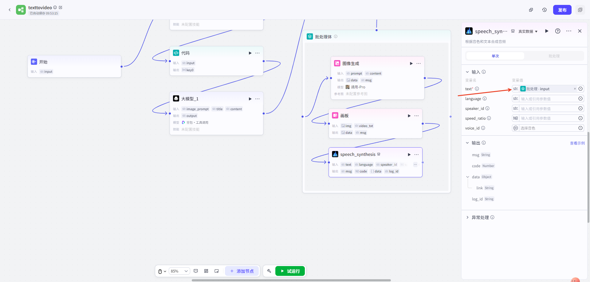 使用(yòng)插件(jiàn):語音(yīn)合成(coze官方)、視(shì)頻(pín)合成工(§gōng)具箱